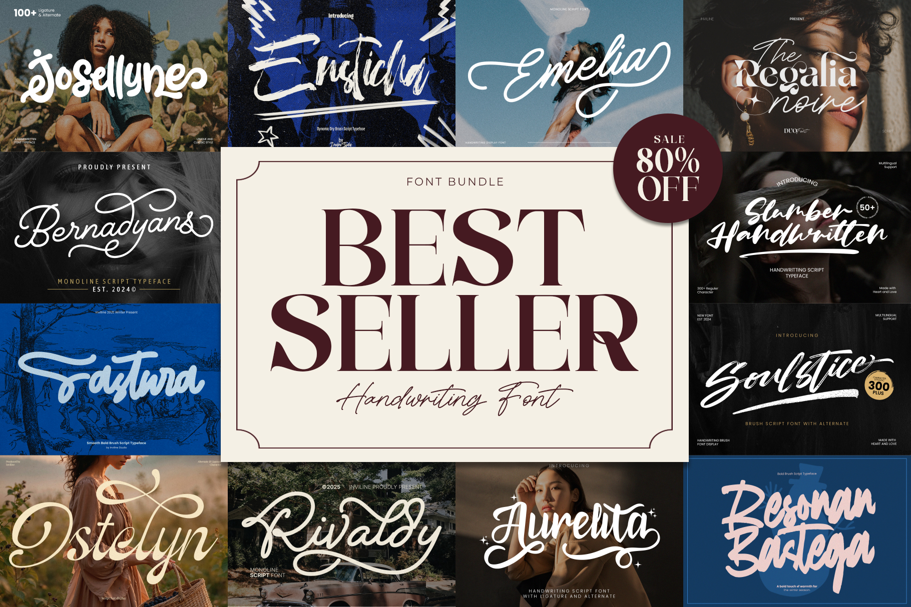 Included are fonts like Josellynes, Enstich, Emelia, The Regalia Noire, and more. each with ligatures, alternates, and multilingual support. Designed to suit a wide range of styles from romantic calligraphy to bold brush strokes, these fonts will bring a dynamic touch to any project.
