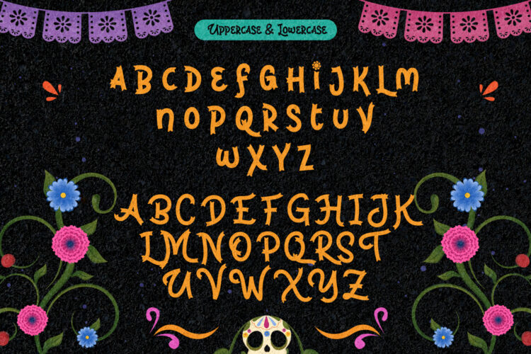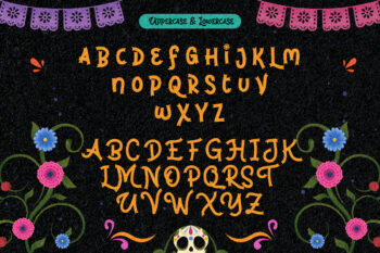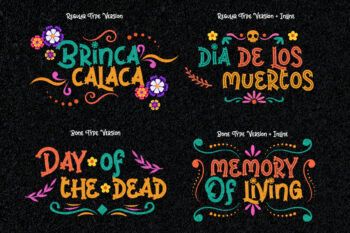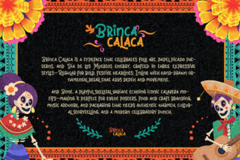 Brinca Calaca is a vibrant Hispanic font family inspired by Dia de los Muertos, featuring bone-styled glyphs, festive ornaments, and a joyful Latin spirit. With Regular, Inline, and Bone variants, this playful display font is perfect for holiday posters, cultural branding, and themed events that need bold personality and handcrafted charm.