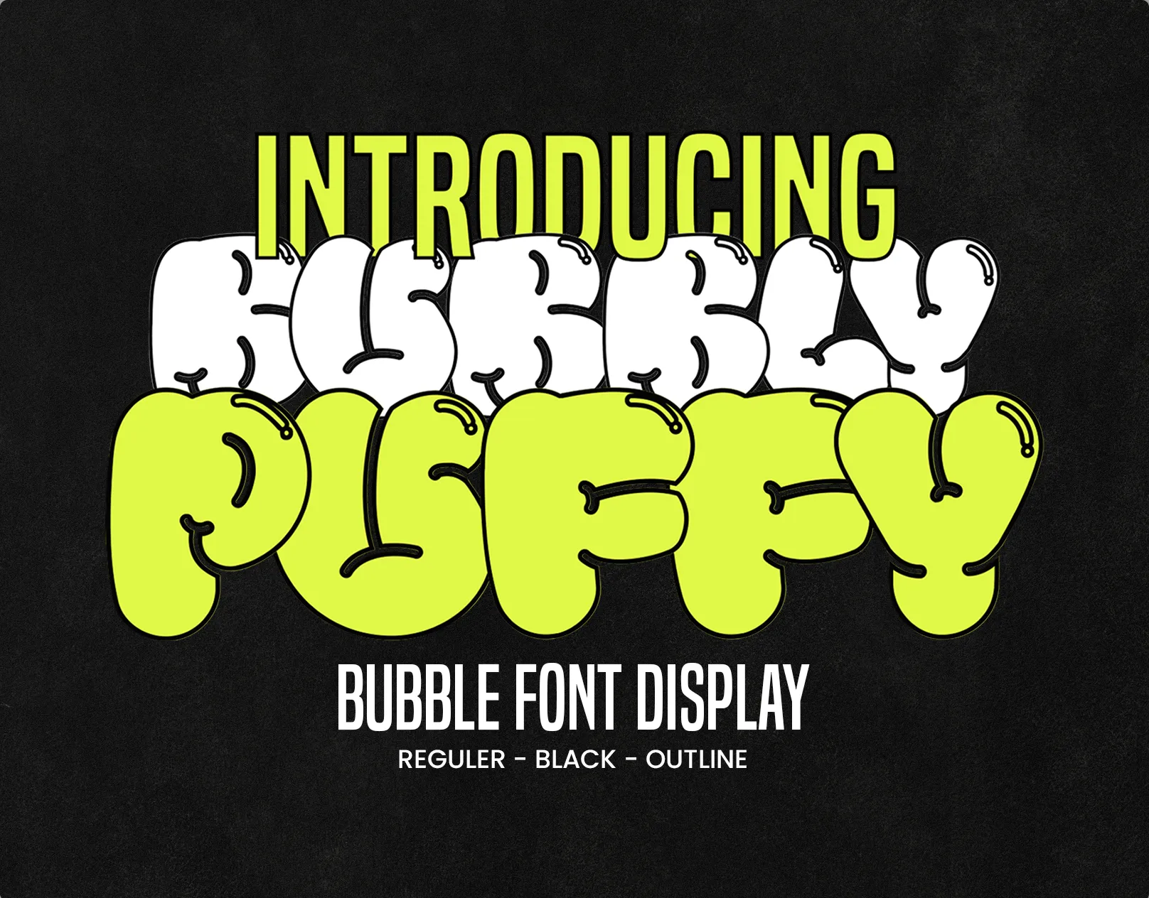Fun and bold Bubble Font Display with rounded, bubbly letters, perfect for playful designs, kids’ projects, logos, and vibrant posters.