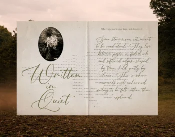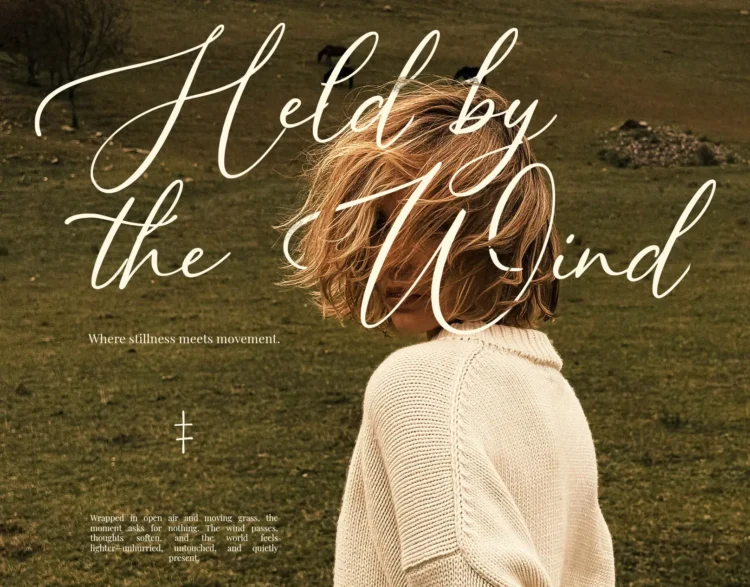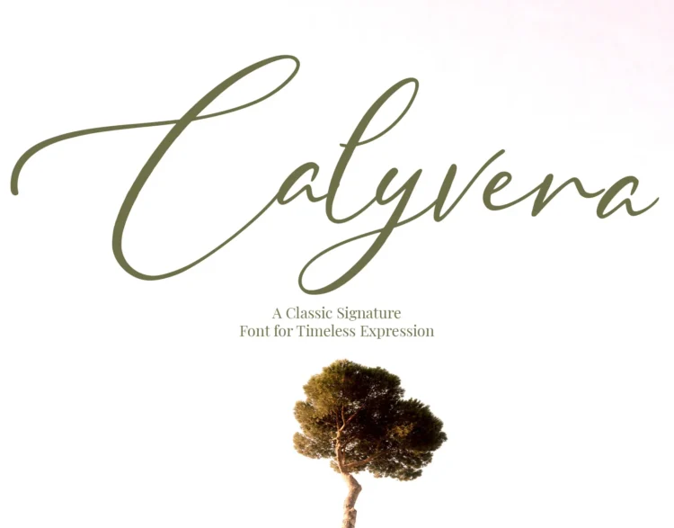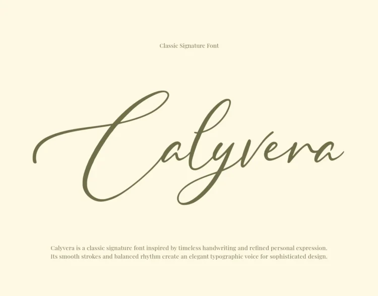 Calyvera is a quiet signature script font inspired by stillness, open landscapes, and the softness of natural handwriting. Its long, flowing strokes and gentle rhythm create an intimate and reflective feel, designed for designs that breathe slowly and speak softly.