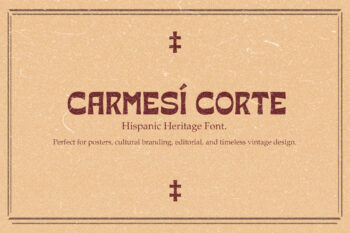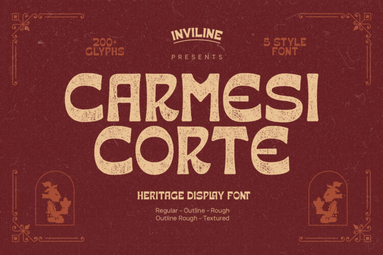 Featuring multiple styles from clean outlines to rough textured looks, Carmesi Corte allows designers to create authentic vintage compositions with strong character, depth, and timeless appeal. Whether used boldly or subtly, it brings heritage charm into contemporary creative projects.