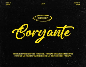 Inspired by freedom, nature, and emotional depth, Coryante works beautifully across modern lifestyle brands, apparel graphics, bold editorial layouts, and poster designs. Whether you’re designing for adventurous spirits or soulful brands, this brush script helps you speak with impact.