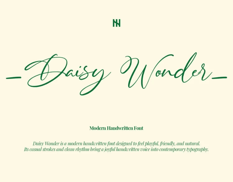 Daisy Wonder is a modern handwritten font designed to feel playful, friendly, and natural. Its flowing strokes and clean rhythm bring a joyful handwritten voice into contemporary typography, perfect when you want your message to feel warm, personal, and approachable.