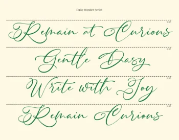 From branding to social posts, Daisy Wonder keeps your layouts feeling fresh and lively. Use it for expressive headlines, logo signatures, packaging, invitations, or quotes that need just the right mix of elegance and ease. Pair it with simple sans-serif fonts for a polished, editorial look, or let it stand alone as a confident display script.