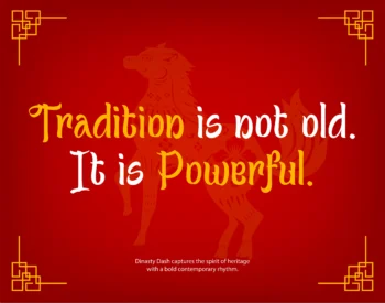 Designed for celebration, branding, and impactful display work, Dinasty Dash shines in Lunar New Year designs, festival posters, packaging, restaurant branding, editorial layouts, and cultural campaigns. With built-in ligatures and multilingual support, this typeface allows you to create harmonious compositions that feel rich, symbolic, and full of character.