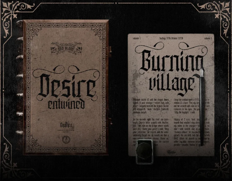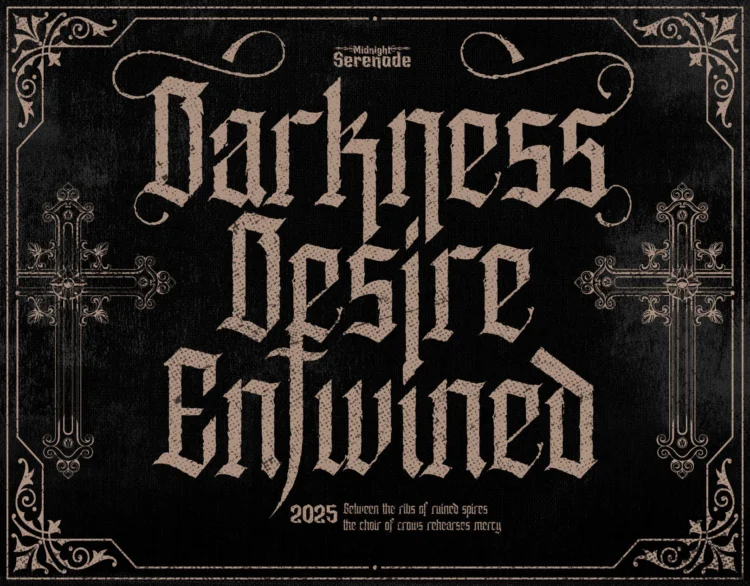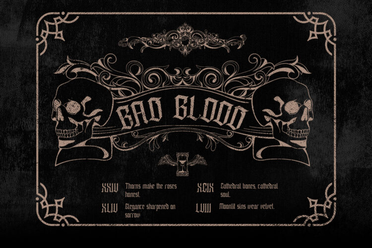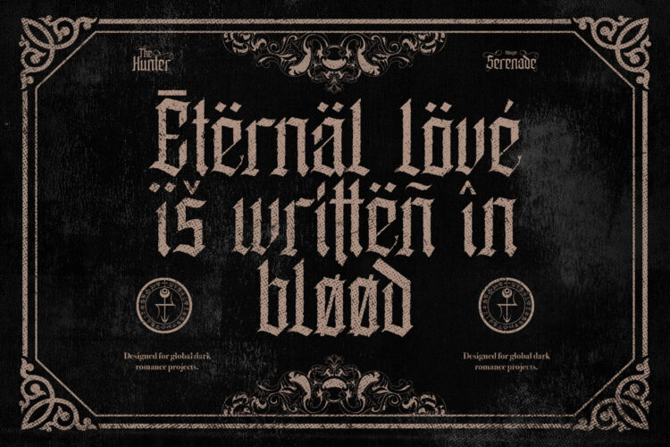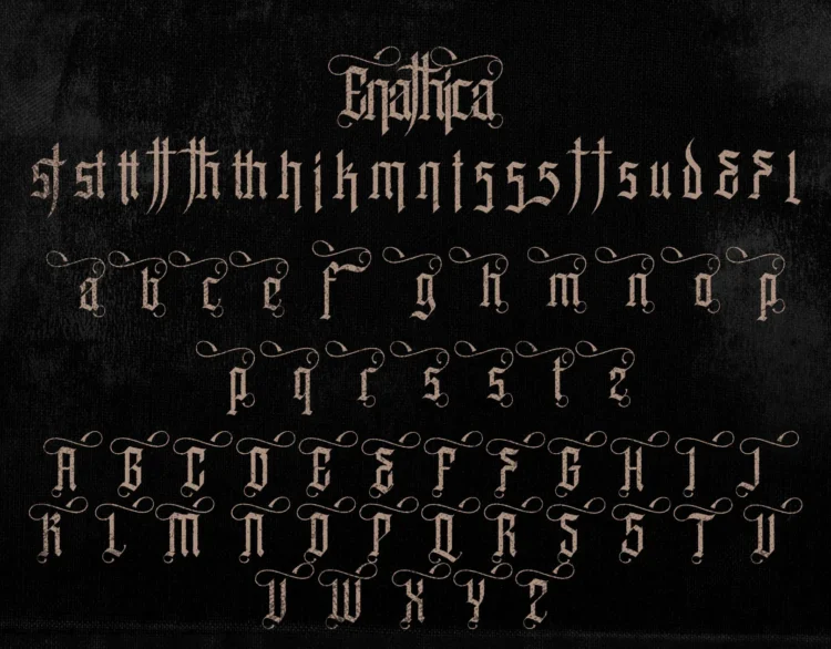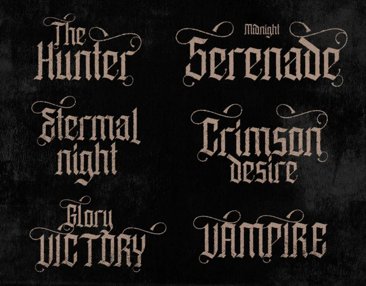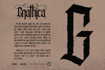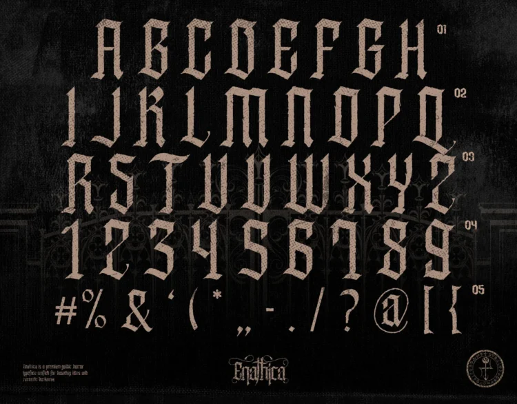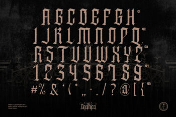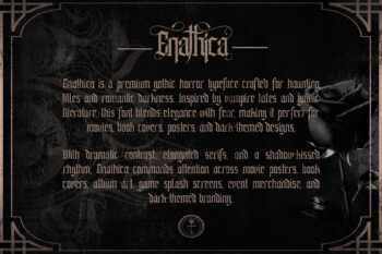 Enathica is a bold and haunting vampire horror font that evokes the eerie elegance of gothic romance and classic horror. Crafted with sharp blackletter-inspired strokes and ornamental swashes, it delivers a spine-chilling aesthetic that is both timeless and theatrical. This font offers uppercase, lowercase, ligatures, alternates, symbols, punctuation, and numerals—making it ideal for creative professionals who want to inject dramatic flair into their designs. Whether you’re a vampire-themed book cover, metal band logo, occult merchandise, or Halloween posters, Enathica is your perfect typeface for storytelling in darkness and desire.