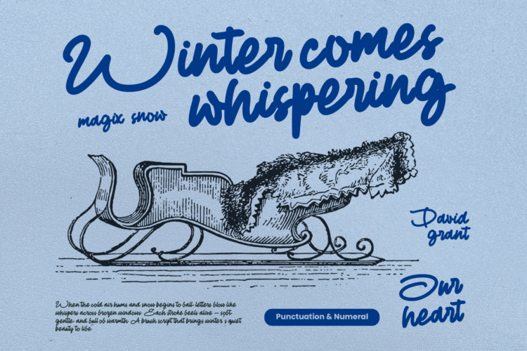 Fastura is a bold smooth brush script font with cozy strokes and winter warmth. Inspired by handwritten joy, it adds elegance to seasonal branding, posters, packaging, and beyond. Its hand-drawn aesthetic makes every letter feel alive—perfect for designs that whisper comfort, nostalgia, and festive charm. From snowflake quotes to holiday cards, Fastura captures the heart of winter in every stroke.