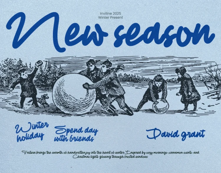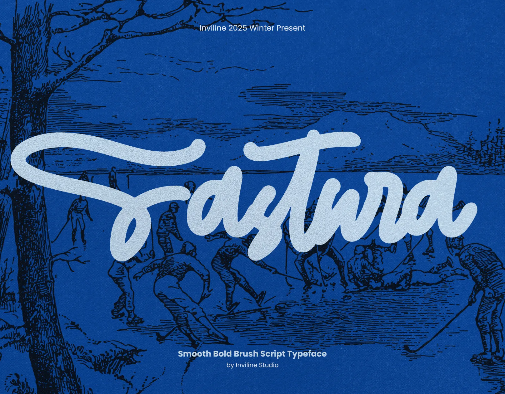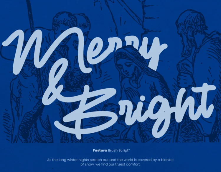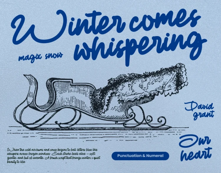 Fastura is a bold smooth brush script font with cozy strokes and winter warmth. Inspired by handwritten joy, it adds elegance to seasonal branding, posters, packaging, and beyond. Its hand-drawn aesthetic makes every letter feel alive—perfect for designs that whisper comfort, nostalgia, and festive charm. From snowflake quotes to holiday cards, Fastura captures the heart of winter in every stroke.