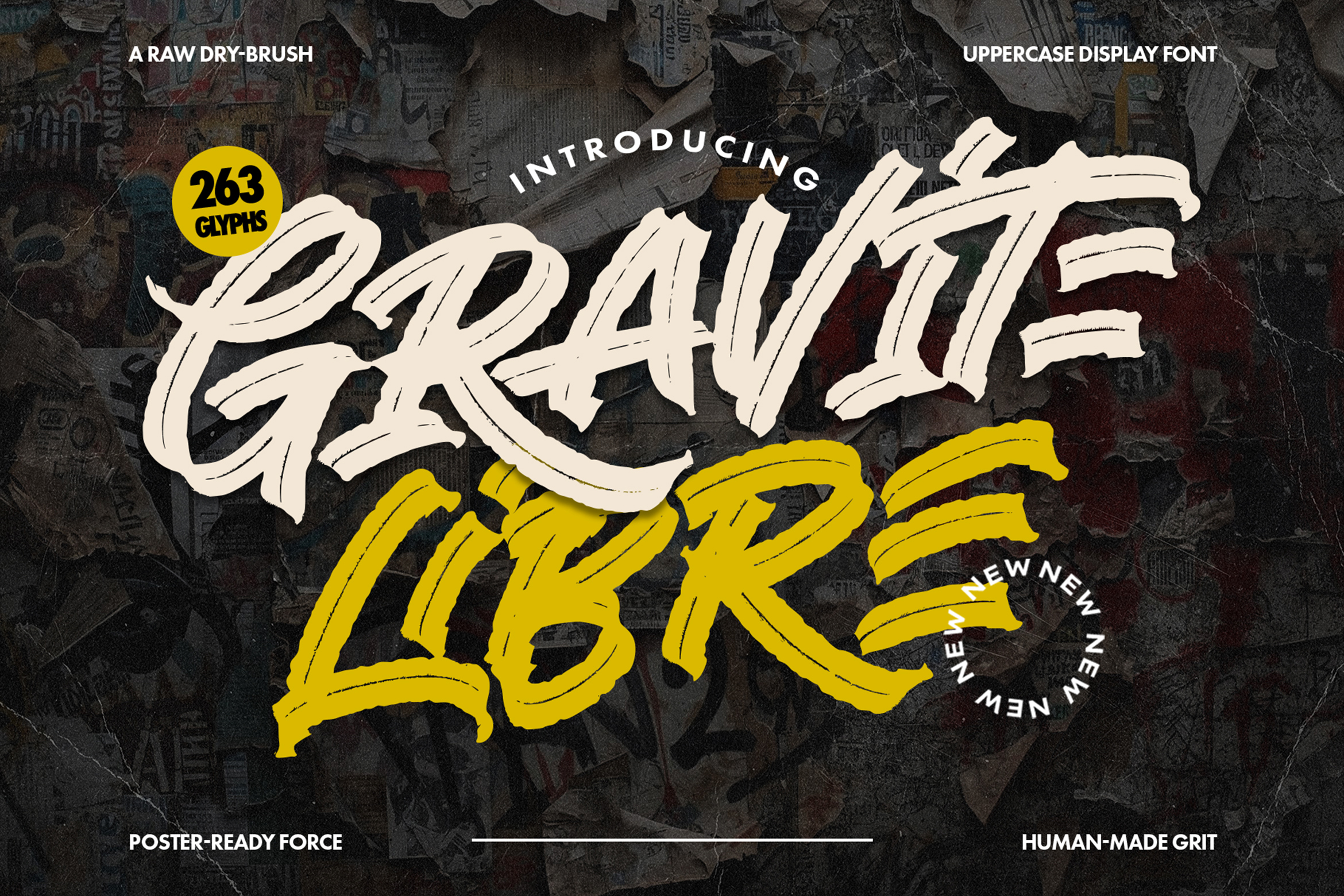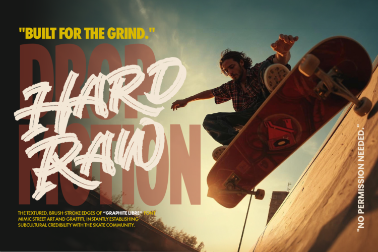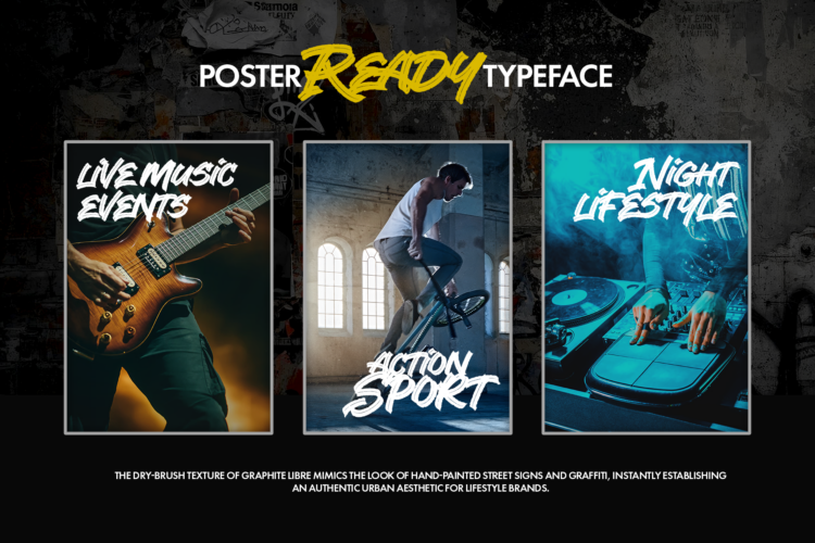 Graphite Libre is a high-impact, hand-painted dry brush font designed for bold visual identities and urban storytelling. It captures the raw energy of street art and contemporary graphic design. Each stroke is crafted to maintain the authentic texture of a dry brush, providing a gritty and organic feel to your creative projects.