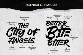 OpenType Features: Includes Ligatures and Alternates.