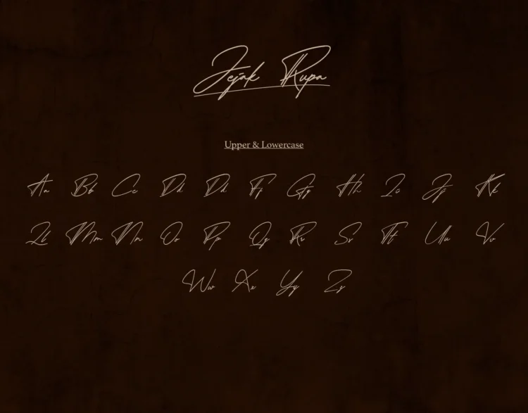 Jejak Rupa is a nostalgic script font inspired by handwritten letters, notes, and signatures from Indonesia’s past. It captures the warmth of old paper, the elegance of cursive ink, and the deep emotional heritage of handwritten stories. Crafted with a vintage soul and local flavor, Jejak Rupa brings timeless character to every design it touches.