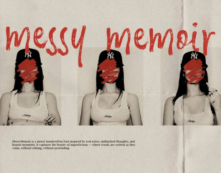 Messy Memoir is a messy handwritten font inspired by raw notes, unfinished thoughts, and honest moments left unfiltered. With uneven strokes, imperfect spacing, and natural ink textures, it captures the beauty of words written as they come without editing, without pretending.