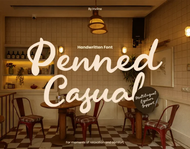 Inspired by café menus, bakery packaging, and handwritten notes on napkins, Penned Casual gives your visuals the comfort of a familiar place. Its smooth curves and easy readability make it ideal for both headlines and short texts, wrapping your designs in a cozy atmosphere that feels inviting, warm, and genuine.