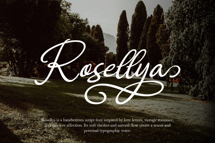 Rosellya is a romantic handwritten script font inspired by vintage love letters and timeless romance. Its soft strokes and flowing lines create an elegant yet personal feel, perfect for heartfelt designs. From wedding invitations to love notes and brand logos, Rosellya brings a warm, emotional touch to every composition. Compatible with major design software and multilingual support included.