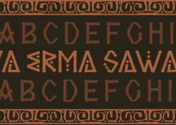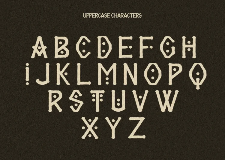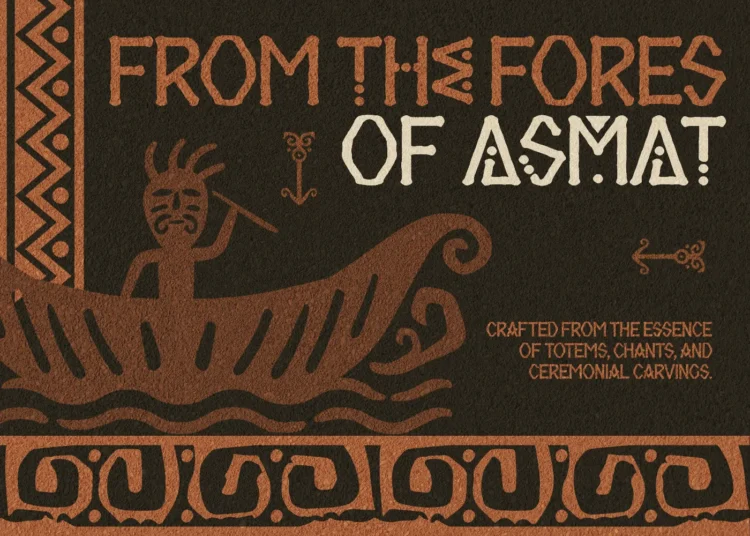 Sawa Erma is a tribal-inspired display font rooted in the visual language of the Asmat culture from Papua, Indonesia. Its rugged forms and totemic motifs, enriched by intricate dot-work, echo the deep spiritual identity and enduring wisdom of indigenous craftsmanship. Each letter carries a symbolic rhythm that speaks of rituals, carvings, and ancestral heritage.