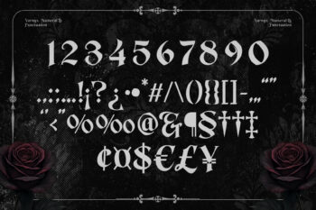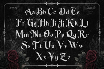 Enathica is a bold and haunting vampire horror font that evokes the eerie elegance of gothic romance and classic horror. Crafted with sharp blackletter-inspired strokes and ornamental swashes, it delivers a spine-chilling aesthetic that is both timeless and theatrical. This font offers uppercase, lowercase, ligatures, alternates, symbols, punctuation, and numerals—making it ideal for creative professionals who want to inject dramatic flair into their designs. Whether you’re a vampire-themed book cover, metal band logo, occult merchandise, or Halloween posters, Enathica is your perfect typeface for storytelling in darkness and desire.